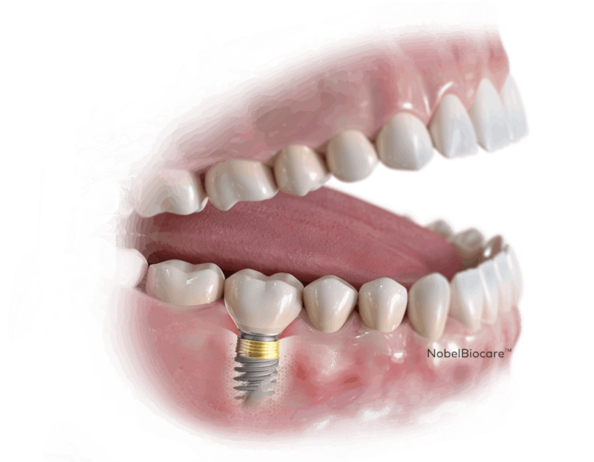 | Implantat se ugrađuje u čeljusnu kost. Nakon 3-6 mjeseci na njega se postavlja nadogradnja, a potom se na nju fiksira zubna krunica cementiranjem ili vidanjem.